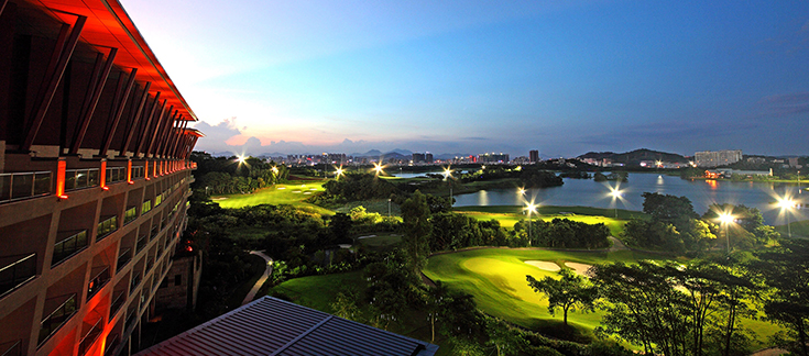 酒店背倚龍湖碧波瀲滟